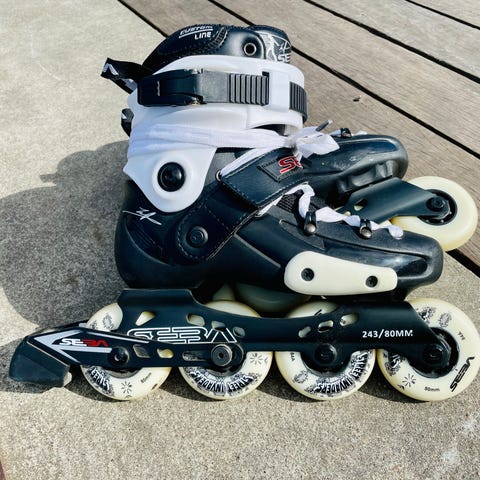 Kvalitets inline rulleskøjte til både øvede og begyndere. Ikke brugt super meget, men har alligevel lidt skrammer hist og her. Størrelse 45.