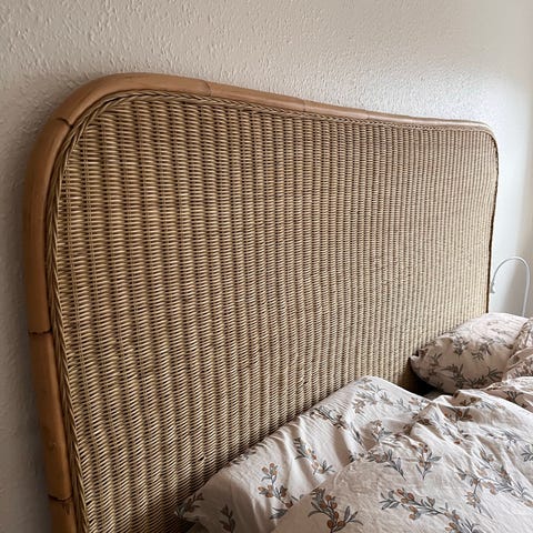 Hovedgavl fra Ellos i rotting og plywood. Gavlen stilles på gulvet. Frihøjde under møbel 33 cm.