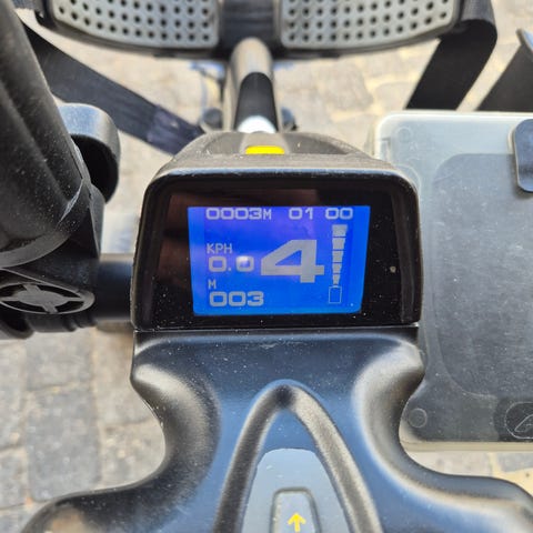 Vognen er med T-håndtag. Den har elektronisk trinløs bremse og hastighed.