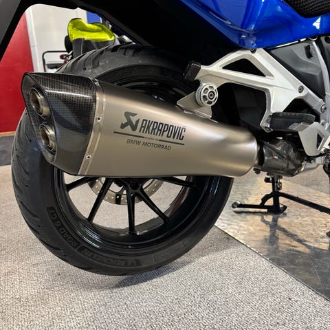BMW motorcykel i sølvfarve. Modellen er en touring-/roadster-type, unik tilbud!!
