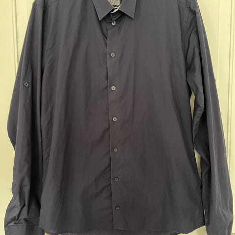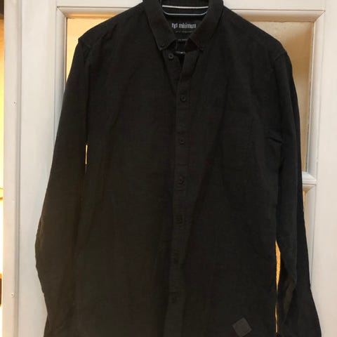 Blåstribet skjorte fra Minimum med korte ærmer. Brugt én gang på Blå Mandag. Nyvasket og klar til brug.