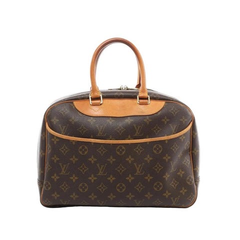 Louis Vuitton taske i læder til kvinde. Tasken har klassisk monogrammønster udvendigt og lysebrunt læder på hanke og kanter. Den lukkes med lynlås foroven og har et rummeligt hovedrum med flere indvendige lommer og rumopdelinger til organisering af indhold. Indersiden er foret med tekstil. Tasken bæres i hånden eller på underarmen via to korte hanke. Velegnet som hverdagstaske eller mindre rejsetaske.