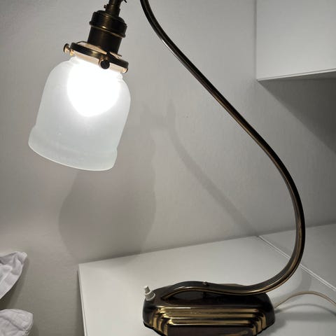 Smuk messing lampe med grøn glas skærm