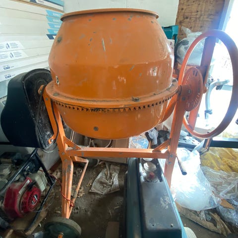 Robust arbejdshest af tysk fabrikat (vistnok HBM, men det har tidens tand gnavet væk 🤓) på ca. 100 l. Den er præget af utilstrækkelig rengøring og udendørs opbevaring, men fungerer 100%. Hvis dit påskeferieprojekt fx omfatter støbning af fundament til carport/redskabsskur, så nap da denneher, og sælg den videre bagefter... 💡