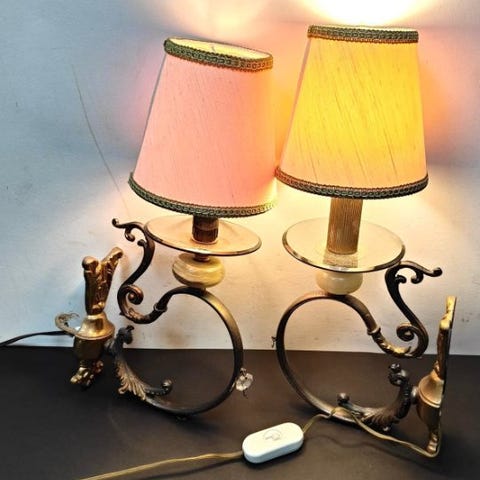 Væg kuppellampe - - Et par væglamper med to lys i forgyldt metal, fint dekore...