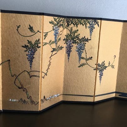 Foldeskærm - Silke, Lakkeret træ, metal - Kina - 1981