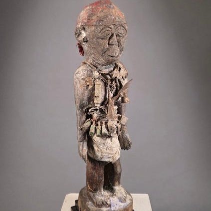 Fremstillet af træ, og patinaen er utrolig, den når en højde på ca 20 cm på det specialfremstillede jernstativ. Nogle få mindre overfladiske ridser, samlet i fremragende stand!