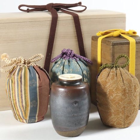 Tekop - Satsuma-keramik te-skål med ridende kriger-motiv og træboks