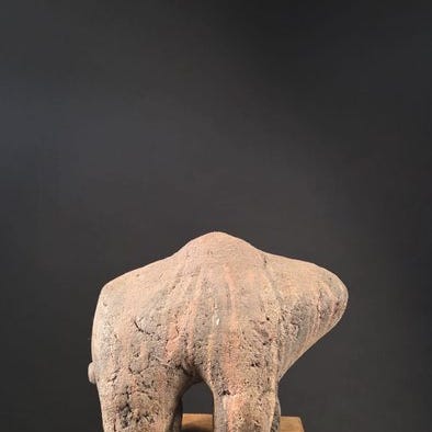 Den rustikke patina giver et jordbundet udseende, sandsynligvis på grund af offringe af olie og majsmel. Det første kranium på forsiden er sandsynligvis fra en hund, hvilket giver fetichen hundens hurtighed. Det andet, i ryggen, er fra en ged, det tredje, på siden, er et kranium fra en vild and.