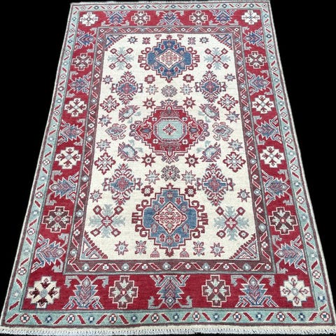 Anmodningen er et håndknyttet Kazak orientalsk tæppe.