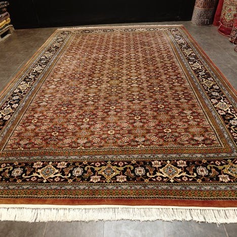 707-stykker Tabriz håndvævet tapis fra Indien, målene 337 cm × 237 cm, silk on cotton, 21. århundrede, i meget god stand, med certifikat for kvalitet og oprindelse. Klik på den blå "gå til varen" knap, for at købe eller byde på denne vare. Den samlede pris vil blive vist inden du afgiver dit bud.