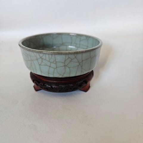 Kinesisk porcelænsfad med titel Famiglia Rosa på en celadon-fond fra senqing-dynastiet (1850–1900), håndmalet med blomster- og sommerfugle-motiver og monteret i forgyldt bronzeramme. Klik på den blå "gå til varen" knap, for at købe eller byde på denne vare. Den samlede pris vil blive vist inden du afgiver dit bud.
