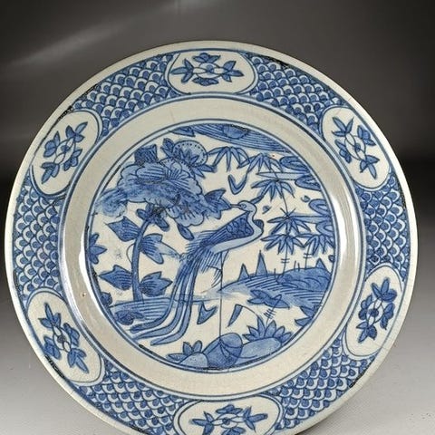 Tallerken - Chinese famille verte on powder blue ground plate. Kangxi period ...