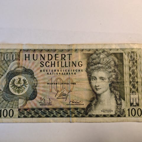 Rar østerrigsk pengeseddel, 50 skilling 1935, tilstand: som vist på billedet