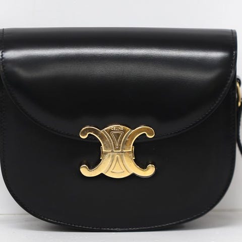 Celine Triomphe Classique i glat sort kalveskind og forgyldt hardware.
