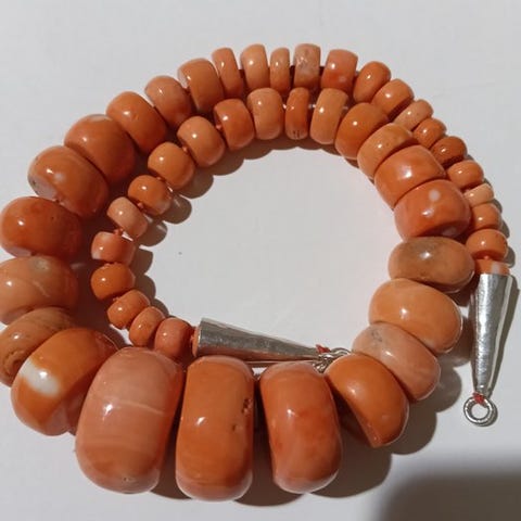 Tibetansk coral halskæde med store perler af naturlig coral. Himalaya-regionen, 1800-tal til 1900-tal.