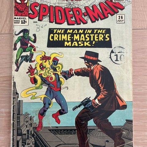 The Mighty Avengers Meet Spider-Man! er en tegneserie fra The Avengers-serien, udgaven Vol. 1 nr. 11, udgivet af Marvel Comics i 1964, i Very Fine tilstand, med kunstnerne Stan Lee, Don Heck, Chic Stone, Jack Kirby og Steve Ditko, og små blyantmærker i øverste venstre hjørne af forside. Klik på den blå "gå til varen" knap, for at købe eller byde på denne vare. Den samlede pris vil blive vist inden du afgiver dit bud.