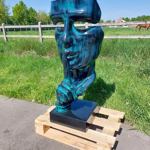 Gevind? Gennem støbt jern Silence skulptur, abstrakt ansigt med stille gestus, fra Europa, dimensioner 10,5 cm bred, 30 cm høj, 12 cm dyb, vægt 2,5 kg, år 2026, i fremragende stand og ikke underskrevet. Klik på den blå "gå til varen" knap, for at købe eller byde på denne vare. Den samlede pris vil blive vist inden du afgiver dit bud.