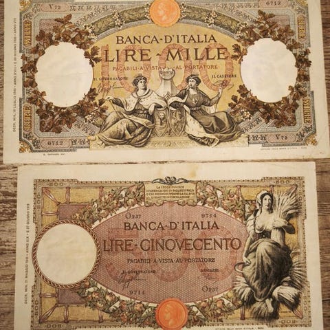 Tre store 500 lire italienske sedler udstedt i 1943 og 1946, katalognumre Gigante BI 31A, BI 33A og BI 37A, i ugraderingstilstand som vist på billederne. Klik på den blå "gå til varen" knap, for at købe eller byde på denne vare. Den samlede pris vil blive vist inden du afgiver dit bud.