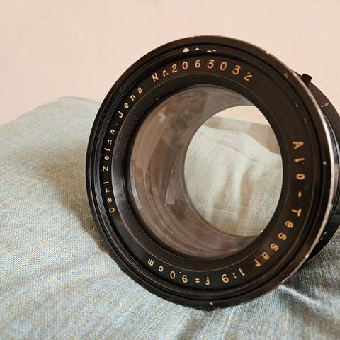 Smukt tungt (511 gram) objektiv fra Carl Zeiss Jena. Dette passer til Exakta-fatning, men med en adapter også flot at montere på dit systemkamera. Hvad jeg bemærker, er, at fokusringen sidder en smule tungt, men stadig glider. Det gælder en smule mindre for diaphragma-ringen, som bevæger 18 blades. Desuden har dette objektiv her og der nogle støvpartikler, hvilket egentlig er helt normalt for dets alder. Endelig kunne jeg ikke finde skimmelsvamp. Jeg har desværre ingen dæksler med; det er et nøgent objektiv.