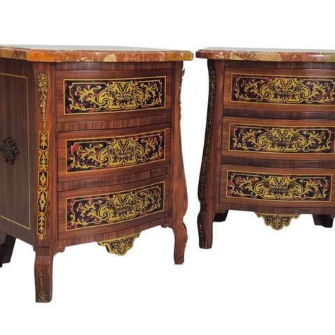 To italienske natborde i træ, marmor og metal i antik Louis XVI-stil, højde 70 cm, bredde 60 cm, dybde 35 cm, vægt 40 kg, oprindelse Italien, i god brugsbetinget stand med små aldersmærker. Klik på den blå "gå til varen" knap, for at købe eller byde på denne vare. Den samlede pris vil blive vist inden du afgiver dit bud.
