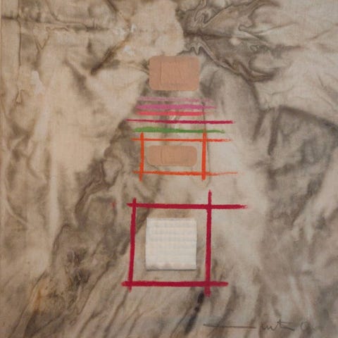 Smukt værk fra 1991 gjort enestående gennem kunstnerens maleriske indgreb, litografi på 300 g karton, anvendt på tungt industrielt karton.