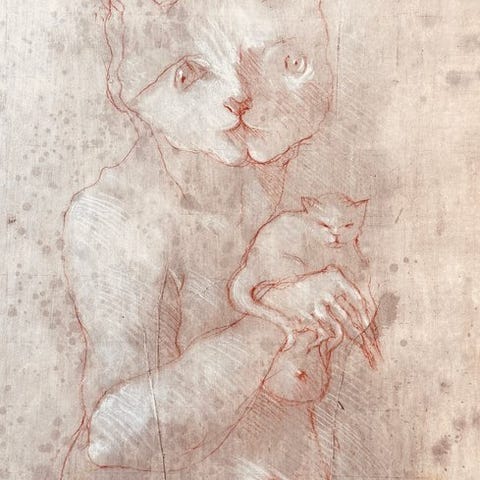 Mappe og billeder af kunstneren, mens han maler, udgør en del af beskrivelsen og angiver værkets oprindelse, vil ikke blive inkluderet.