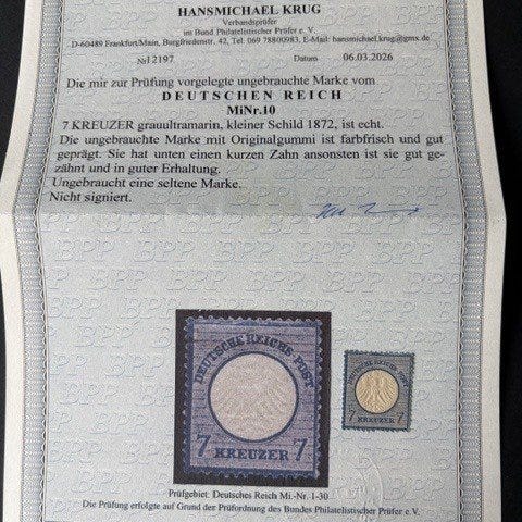 Tyske Kejserrige 1872 - 18 Kreuzer stor Brutschield-certifikat Sommer BPP - M...