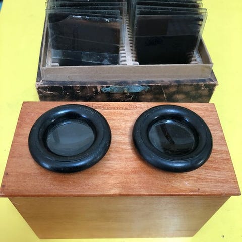 Flot eksemplar af tidlig stereofotografi efter Daguerre-princippet og senere på glas.