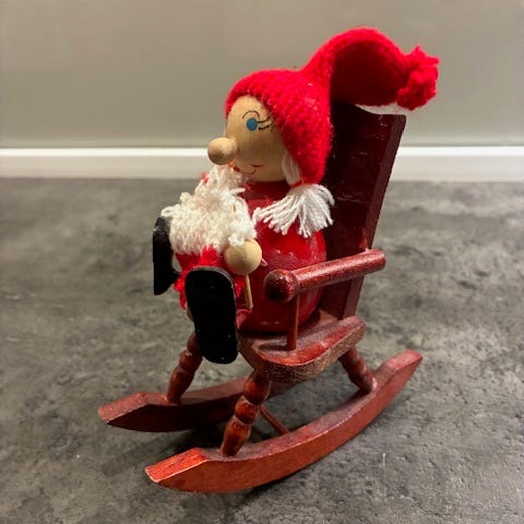Nissemor i gyngestol, Gammel trænisse i gyngestol.
