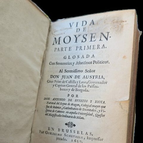 Campana, Cesare. Om krigen i Flandern gjort til forsvar for religion af Katolikker Kong Filip II af Spanien og Filip IIIs af samme navn, for en periode af tredive og tre år; trofast og omhyggeligt beskrevet af Cesare Campana, ridder af Aquila. Første del; (II og III). som indeholder begivenhederne fra År 1559 til 1579. Dedikeret til Den Hellige Carlos Emanuel, hertug af Savoyen, &c. Med privilegier. I Vicenza, hos Giorgio Greco, MDCII. Trykmærke på forsiden forestiller en stående ørn på en gren med et kartus, der bærer mottoet "SINE FELLE". Eksemplaret viser brugsspor og fugtskader, med en blå blækplet på