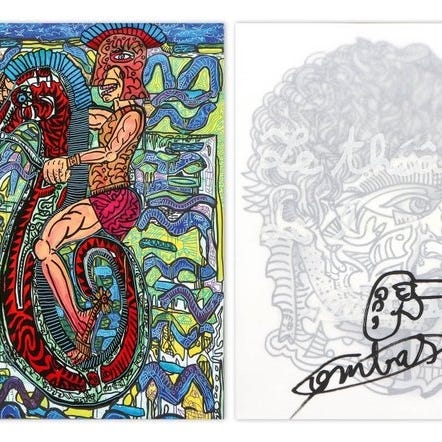 Robert Combas, original acrylmaleri på papir med titel Sans Titre (2010), 47 cm × 37 cm indrammet; håndsigneret, i fremragende stand, Pop Art, Frankrig. Klik på den blå "gå til varen" knap, for at købe eller byde på denne vare. Den samlede pris vil blive vist inden du afgiver dit bud.