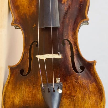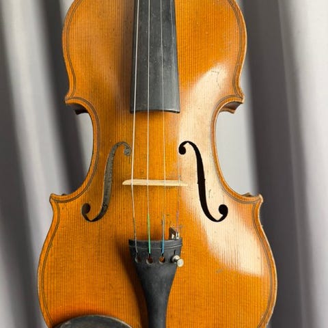 Meget smuk gammel fiolin af størrelse 4/4 med en seddel