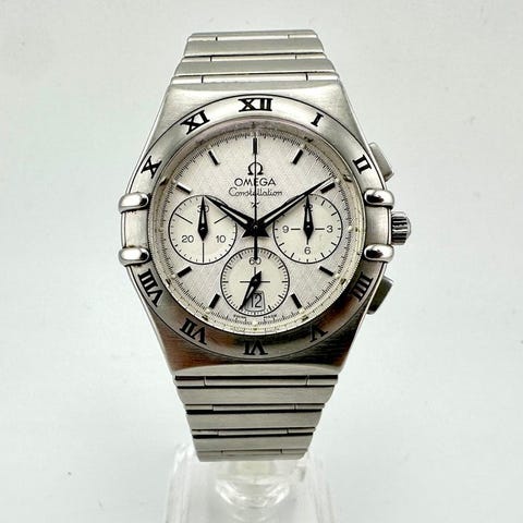 Det er et klassisk urværk, der kombinerer rustfrit stål og gyldentone, karakteristisk for denne ikoniske Omega-linje.