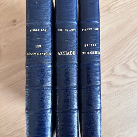 Fembinds, illustreret læderindbundet udgave af Daudet Oeuvres [avec Suite], Editions de l’Odéon, 1962, med håndfarvede illustrationer og en sort-hvid suite i slutningen af hver bind, begrænset til 1.200 eksemplarer (Nr. 13 af 70 på Hollands vellum), samlet 917 sider, 25 × 20 cm, originalt sprog fransk. Klik på den blå "gå til varen" knap, for at købe eller byde på denne vare. Den samlede pris vil blive vist inden du afgiver dit bud.