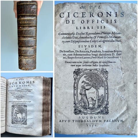 Latin førsteudgave i pergamentbind fra tiden, M. Tullii Ciceronis Orationum af Marcus Tullius Cicero, Venedig 1550, udgivet af Pavlo Manvt. Aldi Filio, 281 sider, 16 × 10 cm, i god stand. Klik på den blå "gå til varen" knap, for at købe eller byde på denne vare. Den samlede pris vil blive vist inden du afgiver dit bud.