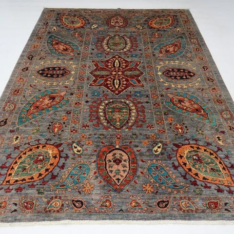 Dette er et håndknyttet orientalsk tæppe, lavet af holdbare, naturlige materialer. Måden at knude på og mangfoldigheden i mønstrene gør tæppet til et unikum og understreger det autentiske og håndværksmæssige præg.