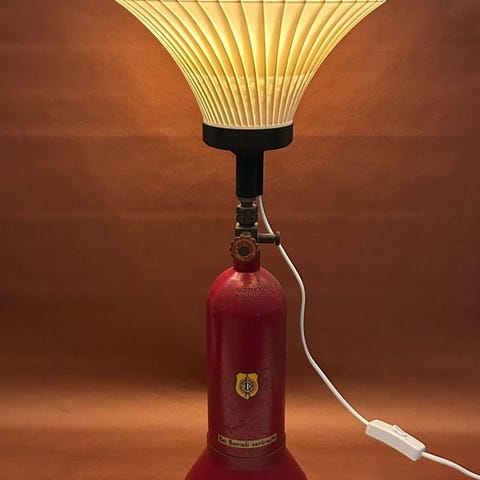 Basen af lampen er en antik laboratoriebrænder fra det traditionsrige mærke Horo (Stuttgart-Hedelfingen) fra 1970. TiWo-Design har dette tekniske arveeget transformeret til et moderne
