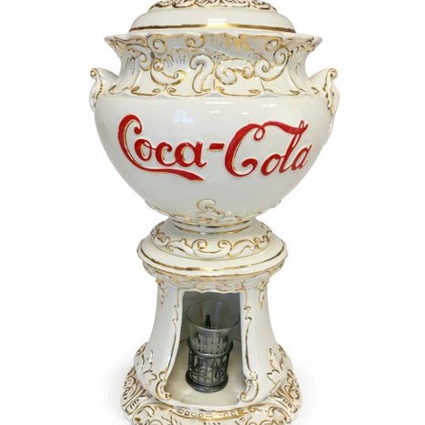 Autentisk støbejernsmold Coca-Cola-flaske fra USA, dateret 1930–1940, 22 cm høj, 18,2 cm bred, 18 cm dyb, vejer 24 kg, brugt med aldersrelaterede slidmærker og med originale formblokke og base. Klik på den blå "gå til varen" knap, for at købe eller byde på denne vare. Den samlede pris vil blive vist inden du afgiver dit bud.