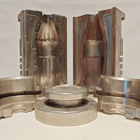 Denne type støbeforme blev brugt i glasfabrikker til at producere de klassiske returnerbare Coca-Cola-flasker i løbet af det 20. århundrede.