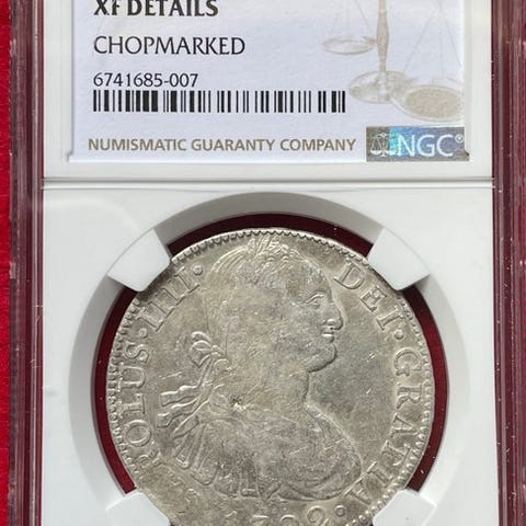 8 Reales 1790 Carlos IV præget i Lima.