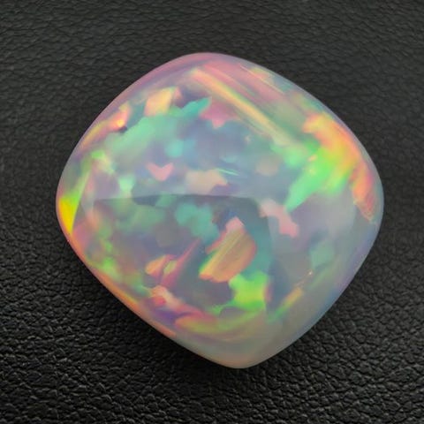 En enkelt opal cabochon på 20,40 ct, oprindelse Etiopien, med IGI-rapport nr. IGI 588332280 og ingen tegn på behandling. Klik på den blå "gå til varen" knap, for at købe eller byde på denne vare. Den samlede pris vil blive vist inden du afgiver dit bud.