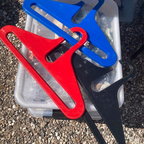 Tøjbøjler - Decembre, Karhumuovi Plastic, Farvestrålende tøjbøjler , Finsk design 1969´erne af Karhumuovi . Serien kaldes Decembre