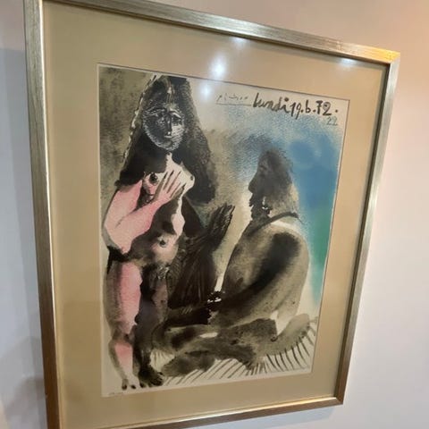 Vintage Pablo Picasso litografisk plakat fra 1962. Denne litografi blev i en begrænset oplag udgivet af det franske transportministerium til promovering af Côte d'Azur i 1960'erne, tilstand A, ikke indrammet, forsynet med en professionel backing, købt hos det svenske auktionshus Stockholms auktionsverk, trykt hos Imprimerie Mourlot i Paris, ed. 61/23. Mål: 100 x 66 cm. Værket er grundigt beskrevet i Czwiklitzers catalogue raisonné under nummer 177, og i Rodrigo, Bind I, nr. 118 på side 26, samt i Zervos, Bind XVII, nr. 400. Disse omtaler viser hvor vigtigt dette værk anses af kunstkendere.