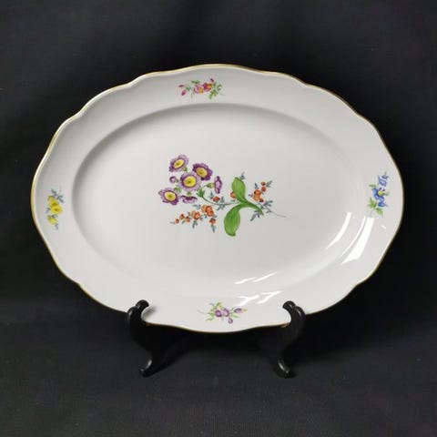 Velkommen! Vi præsenterer en oval serveringsfad med spredt blomster mønster.