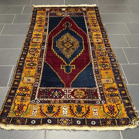 Tæppet er i fremragende stand; kun enderne har let løse tråde.