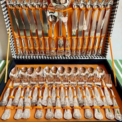 Et elegant og komplet 96-deles sølvpladet bestiksæt til 12 personer, fremstillet af den prestigefyldte franske sølvsmed Ercuis.