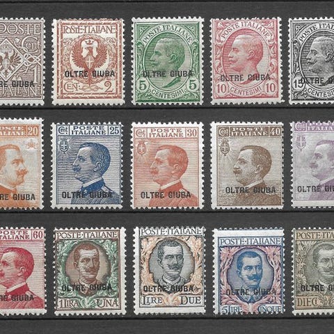 Oltre Giuba n. 13 frimærker til postpakker overstemplet friske og som nye uden linguella