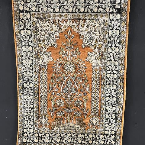 et håndknyttet, usædvanlig fint kasmir-silketæppe fra Indien tilbydes.