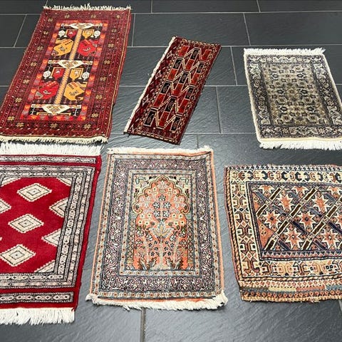Orient Mix Set, håndknyttede tæpper fra Indien i uld på bomuld, 140 × 75 cm, to stykker, i god stand, fra slutningen af det 20. århundrede. Klik på den blå "gå til varen" knap, for at købe eller byde på denne vare. Den samlede pris vil blive vist inden du afgiver dit bud.
